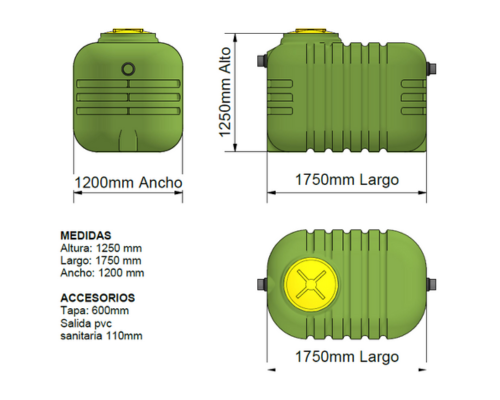 Fosa Séptica Manto ondulado reforzado 6 personas a dotación 250 L/día 10 personas a dotación 200 L/día.